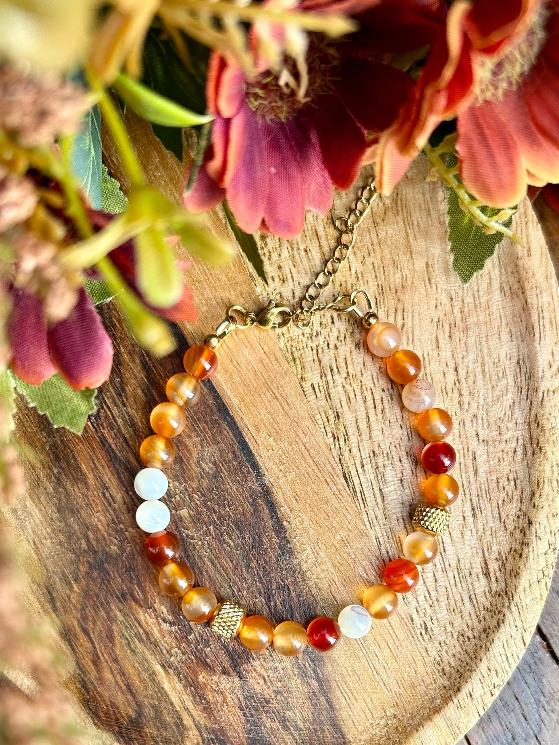 Bracelet Vitalité & Douceur – Cornaline 6 mm & Nacre